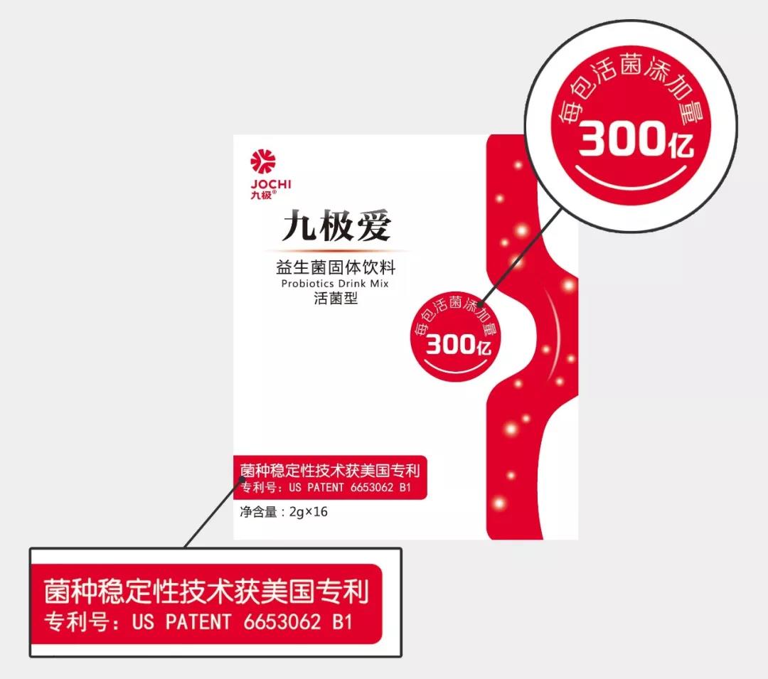 九極愛益生菌的菌種穩(wěn)定性技術(shù)獲美國專利(專利號(hào):US PATENT 6653062 B1),每包